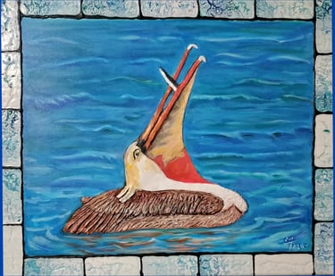 I favor acrylic on canvas with many unique characteristics including the use of molding compounds that allow me to sculpt relief images directly onto the canvas, These 3-D elements are then lacquer sealed and hand-painted. I also embellish many of my works with hand poured paint borders, a technique learned from Jon Schooler, an early mentor of my New Orleans art experience.