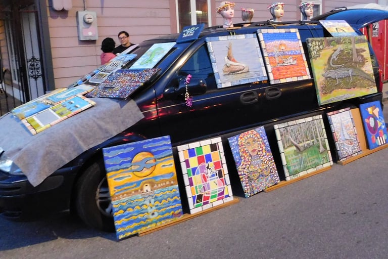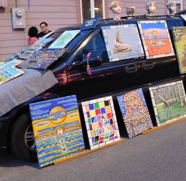 My art can often be seen in and around local festivals, especially events Uptown on Oak Street. I also have art at Zotz on Oak Street and at Mimsie’s Carriage House Air B n B on the corner of Pleasant and Chippewa. Reasonably priced, it is my hope that my art might grace your walls and spark a light in your heart.