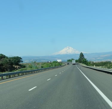 Rested and anxious to get going the next morning, I vowed to push on to Portland. The Columbia River occasionally came into view as I traversed its valley, ever westward. One prominent feature I passed was Mount Hood. I marveled at the distant snow-covered peak of that dormant volcano before it slipped out of sight.